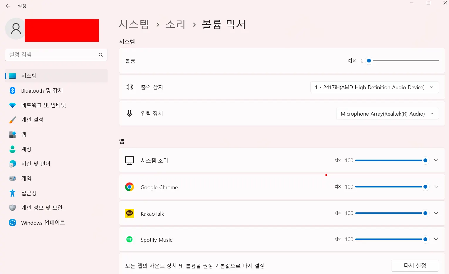 (볼륨믹서에 크롬이 나오지않는 경우 크롬을 키고 '다시설정'누르고 좀기다리면 나타납니다.)