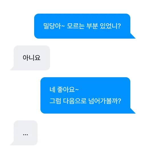 신규 환불자의 25%는 서비스 적응에 어려움을 겪으며 이탈합니다. 이를 세부적으로 살펴보면, 학생들은 [ 타자가 느려서, 소극적이어서, 질문하기 부끄러워서, 어떻게 질문해야 할지 몰라서, 메타인지 부족 ] 등의 이유로 질문을 꺼리게 됩니다. 이로 인해 학생들은 서비스의 핵심 가치인 선생님의 터치를 충분히 경험하지 못하며, 결국 학생과 부모 모두 밀당PT에서 만족스러운 경험을 얻기 어려운 상황이 발생합니다.
