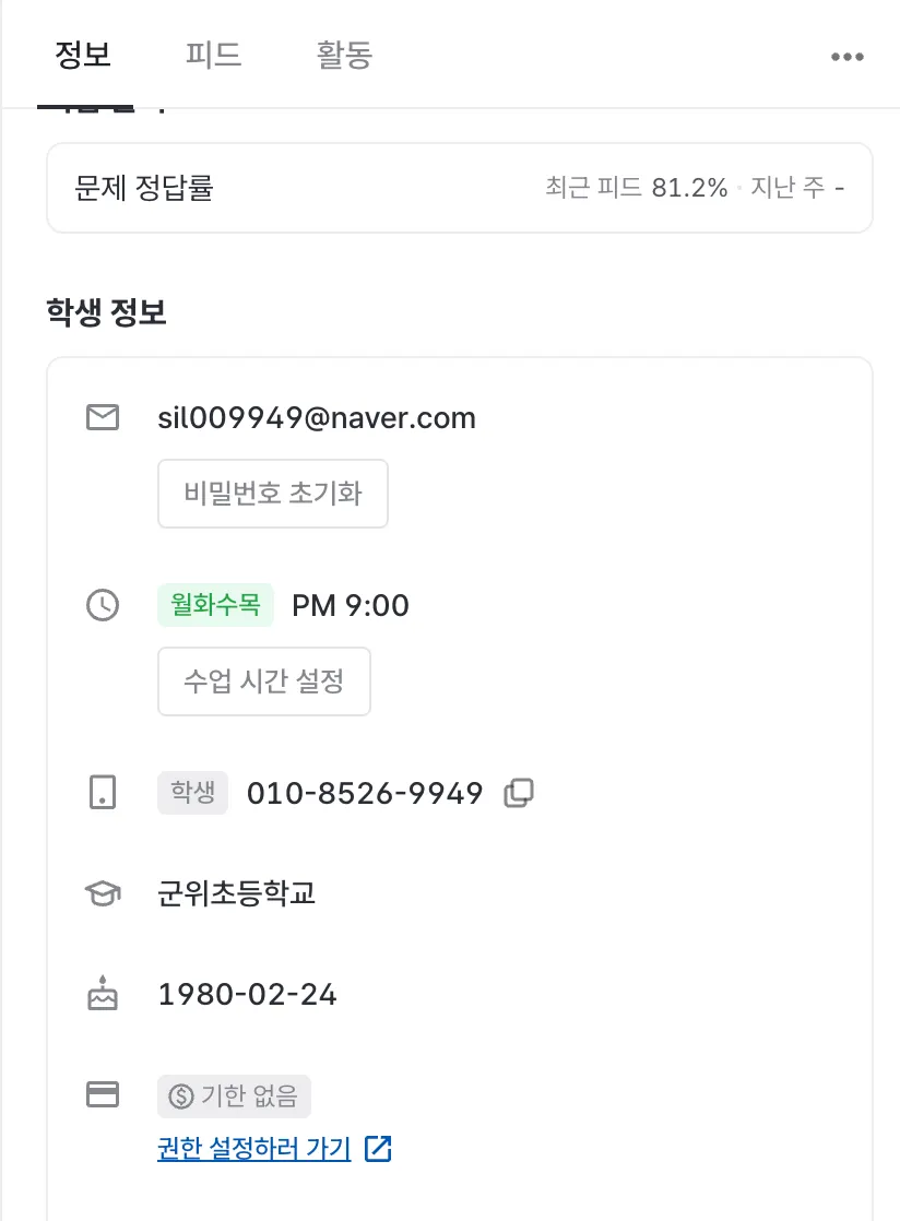 학생 카드의 만료됨과 정보탭의 기한 없음은 현재 다른 정보입니다.