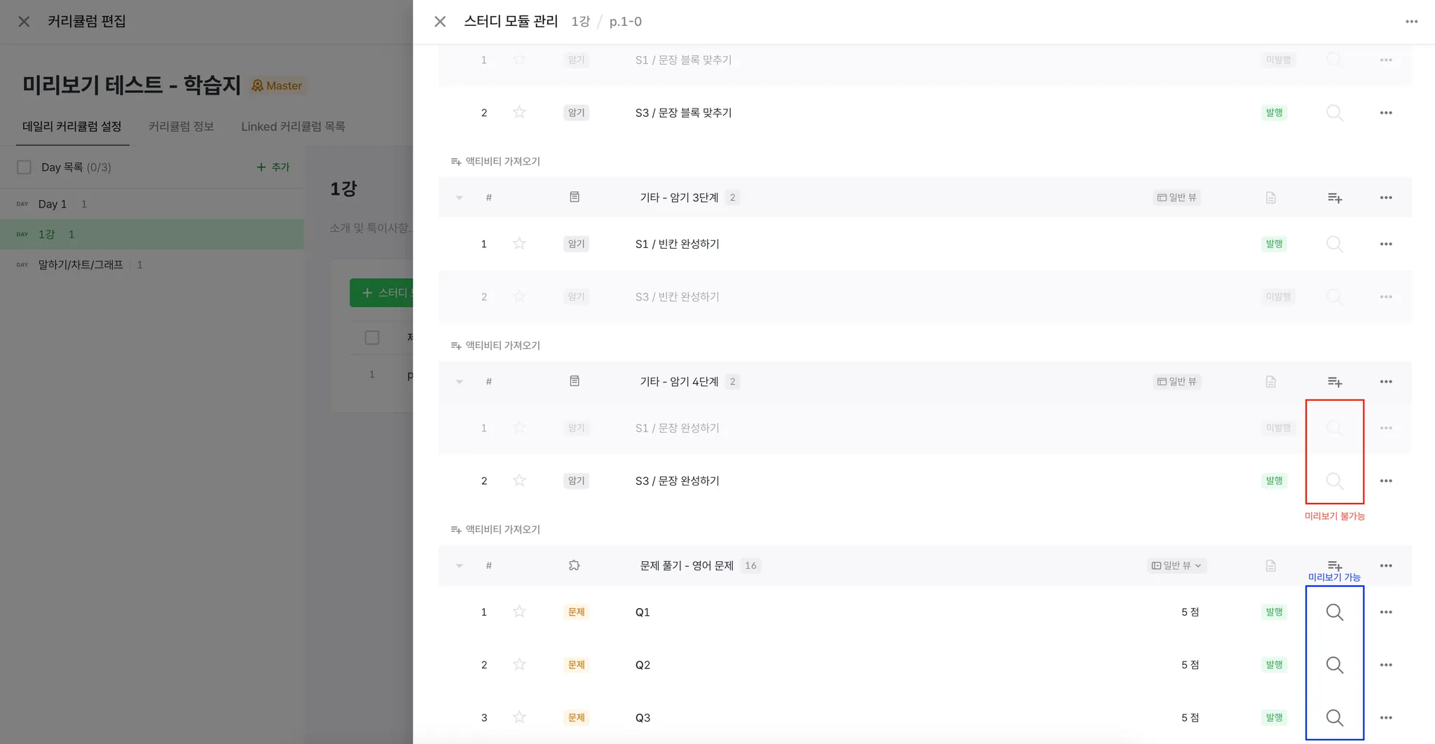 : 커리큘럼 / 스터디 모듈 / 스터디 유닛에 추가된 SA가 어떤 SA인지 확인할 수 있는 미리보기 기능이 추가되었습니다.