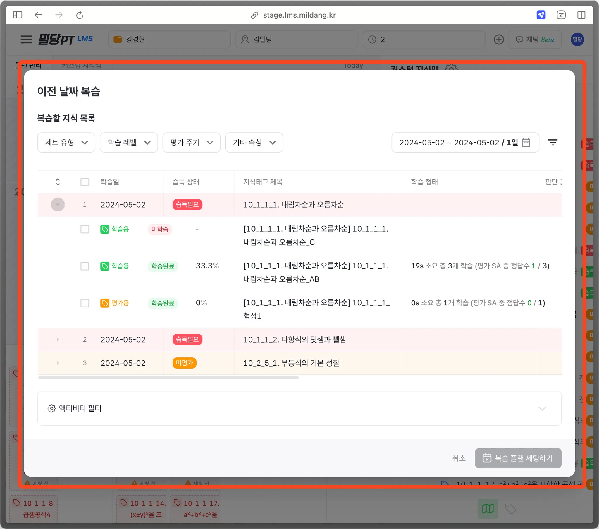 복습 플랜은 이전에 학습한 내용을 복습을 할 수 있도록 돕는 기능입니다.