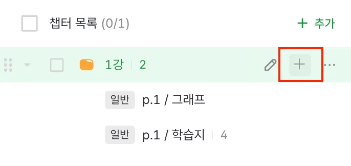 챕터 리스트에 마우스를 올리면 [+버튼]이 보입니다.