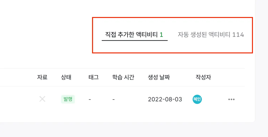 콘텐츠 모듈에 있는 액비비티의 갯수를 한번에 확인할 수 있어요.
