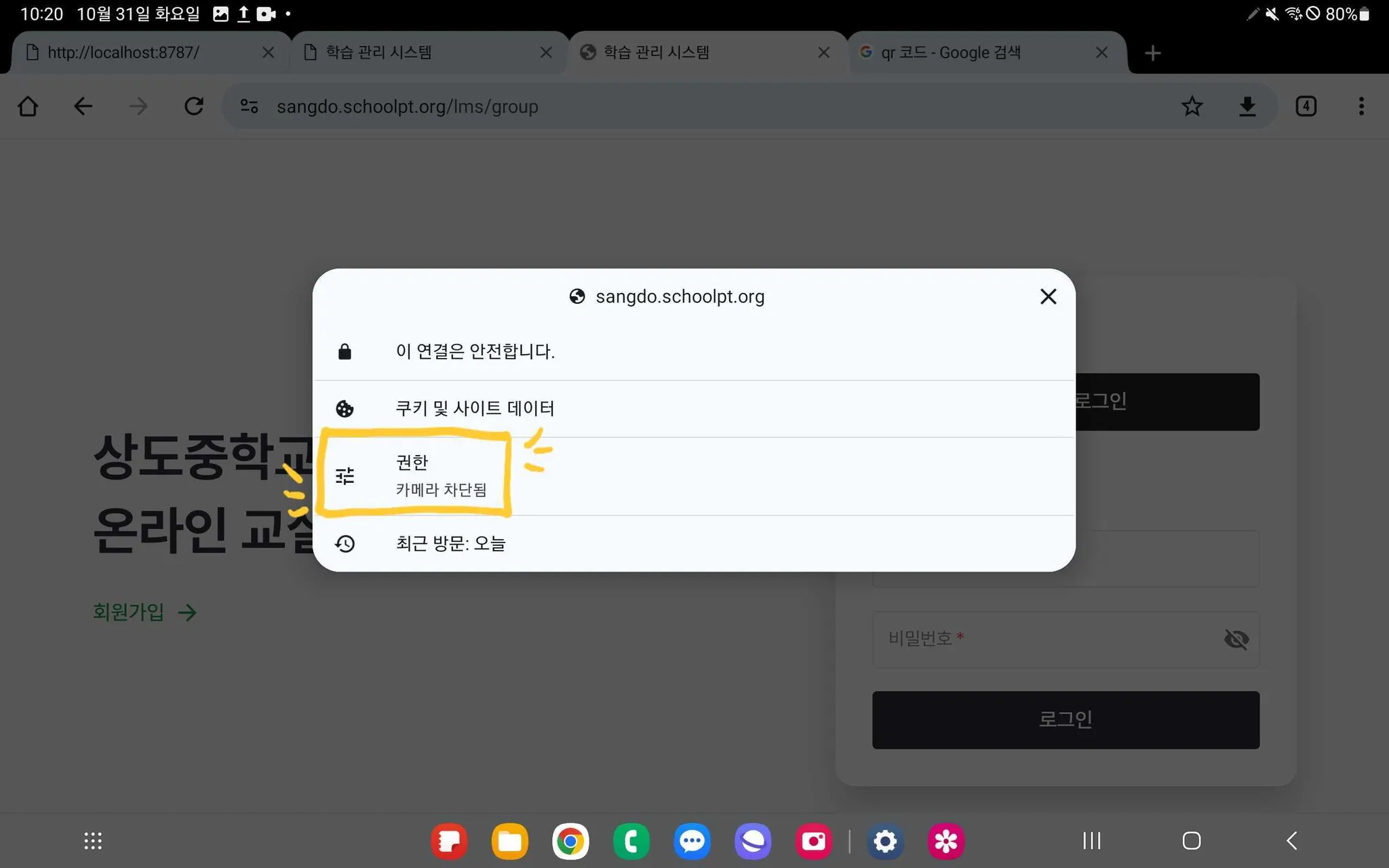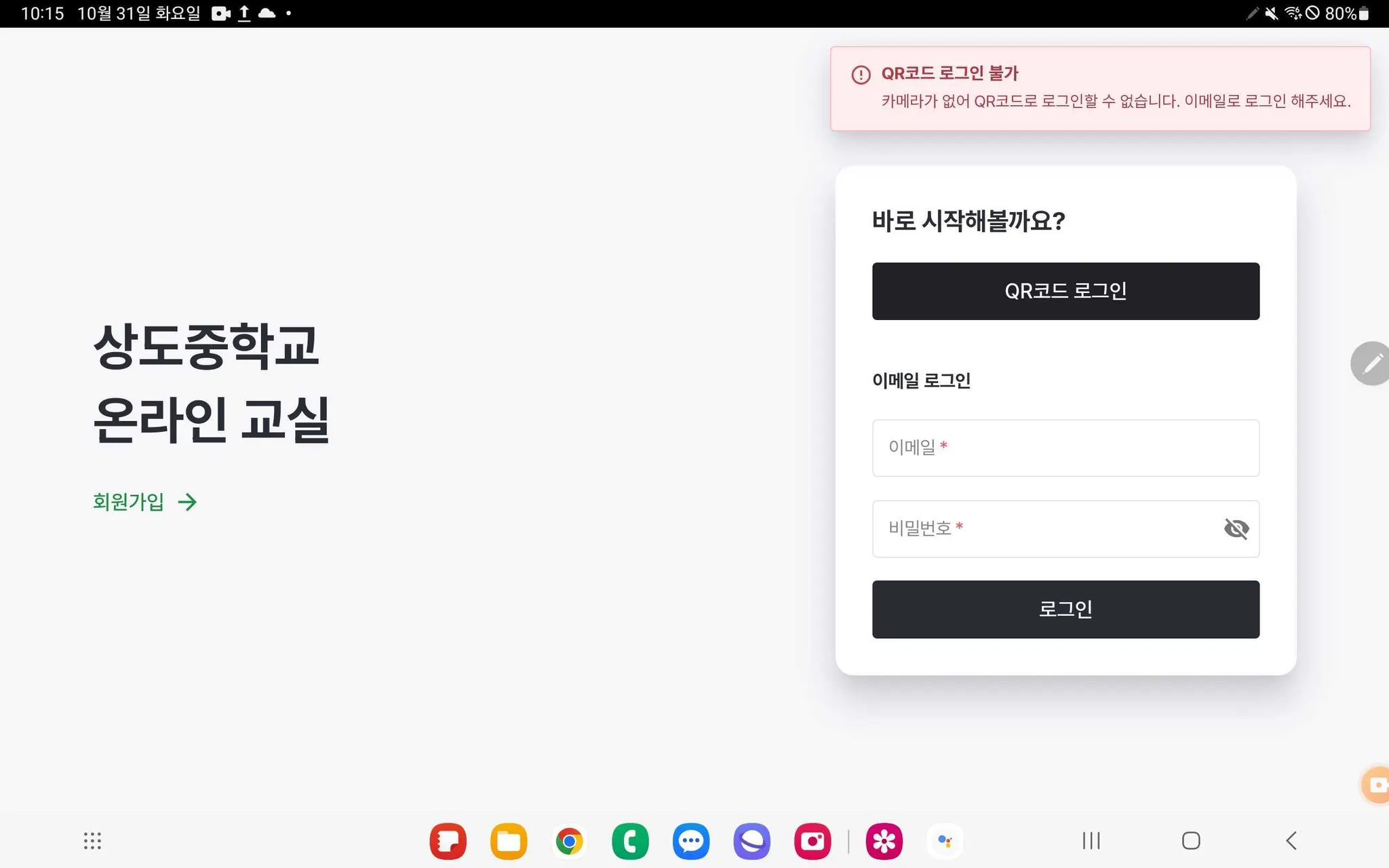 카메라가 있는데 QR코드 로그인 불가 에러가 떴어요! 어떻게 해결해야 하나요?