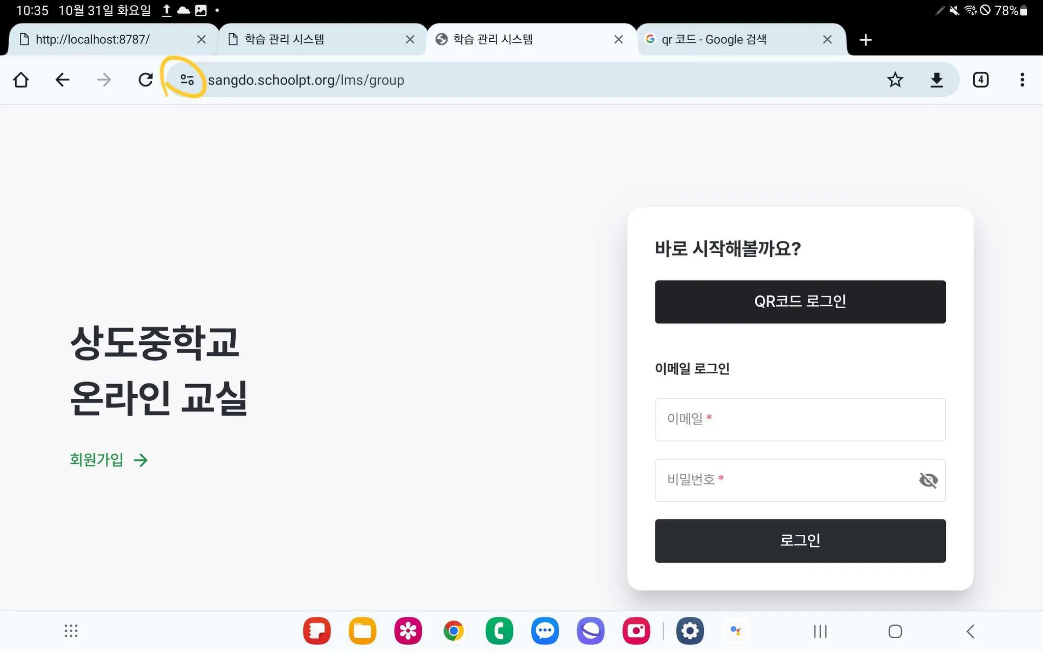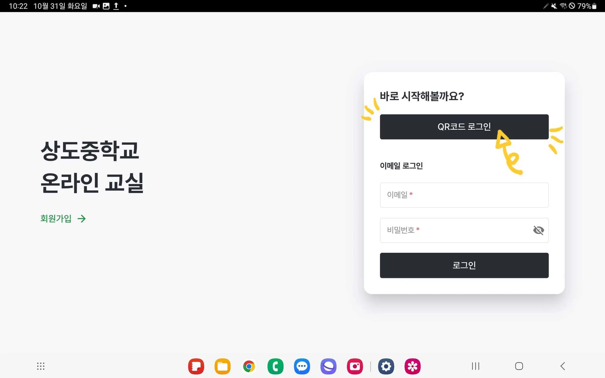 다시 홈 화면으로 돌아가 선생님에게 안내받은 “우리학교 온라인 교실”을 오픈합니다.