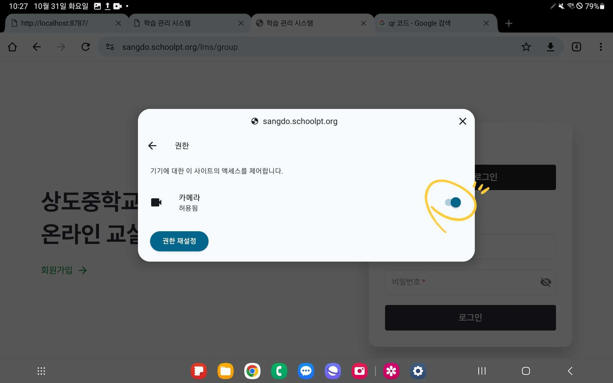 카메라 권한을 허용하고 창을 닫아주세요