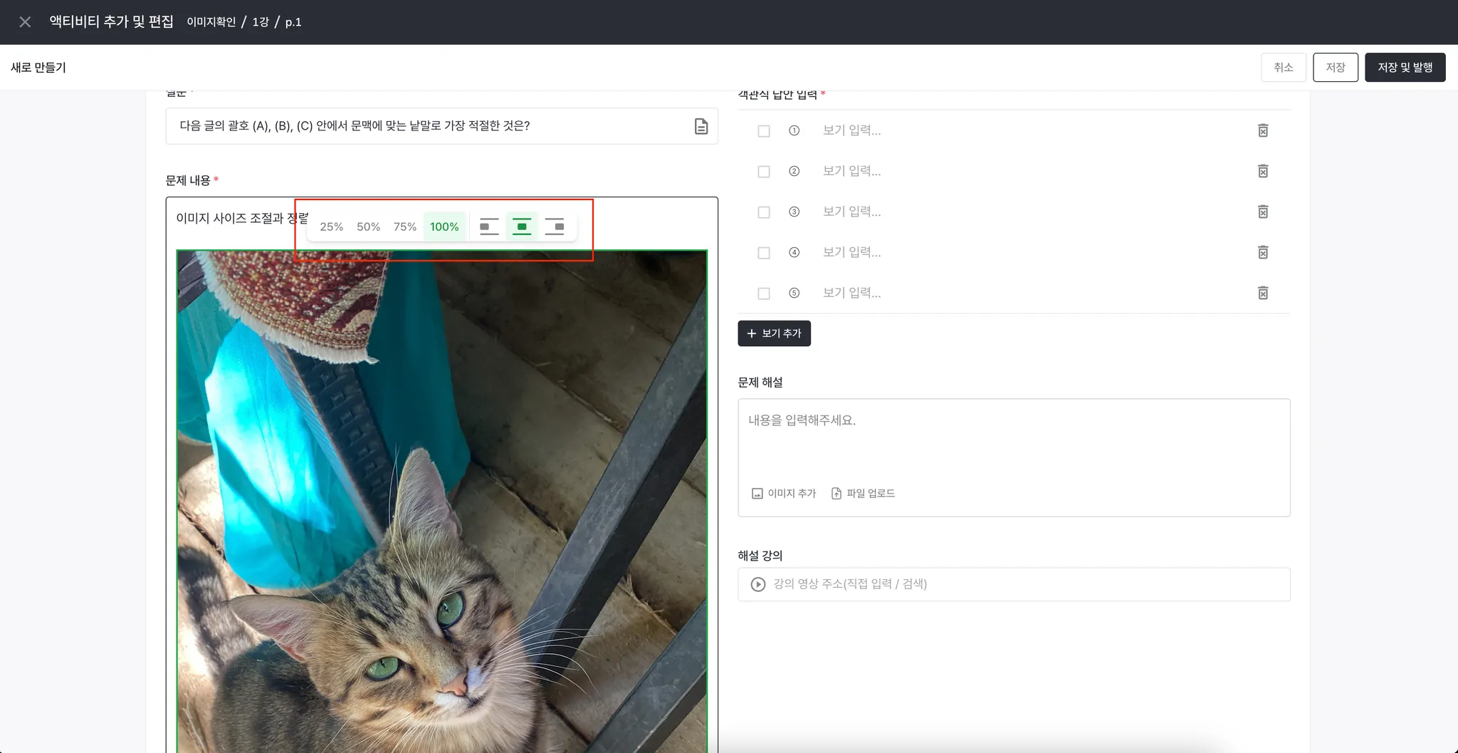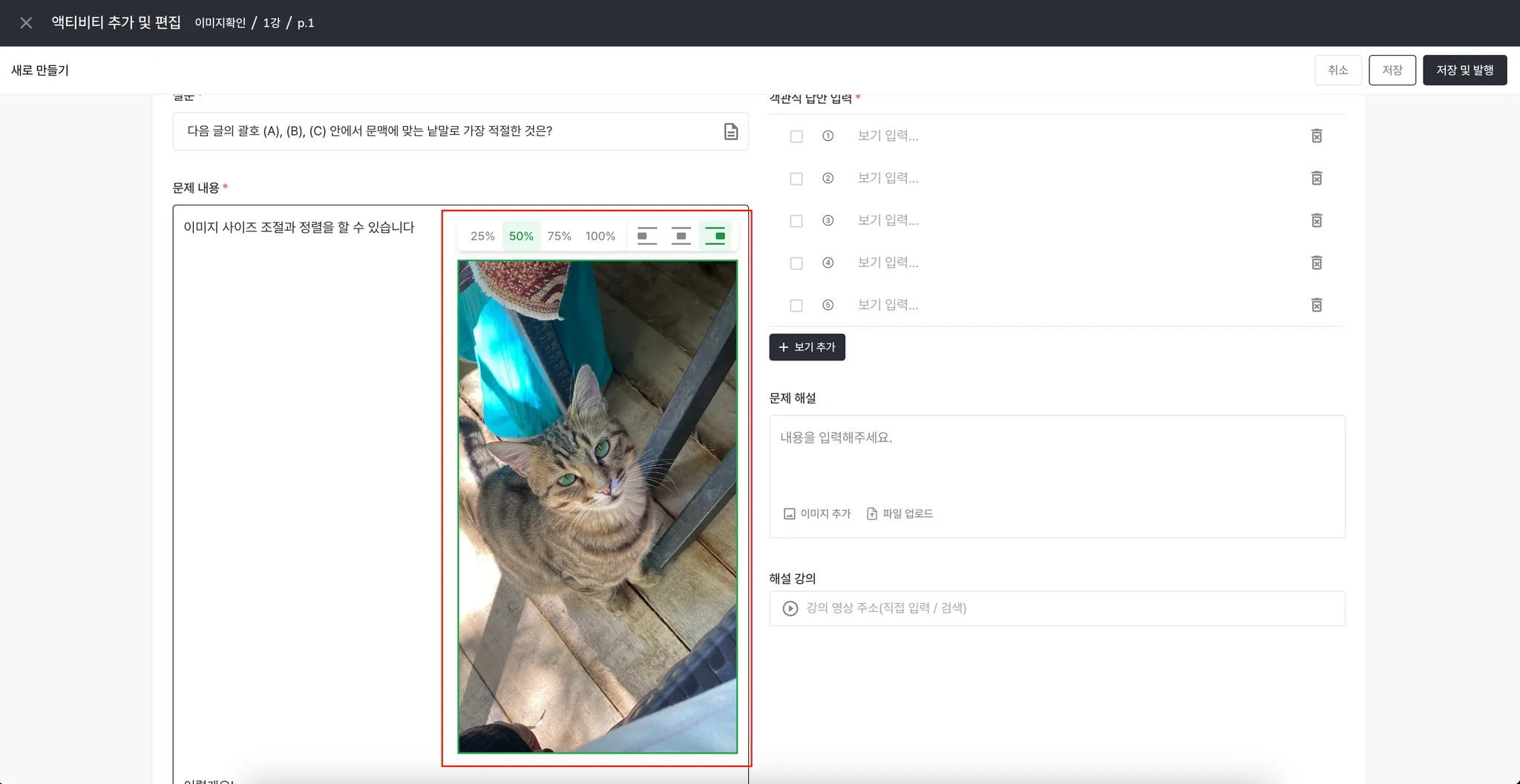 : 문제 내용, 추가정보, 문제 해설에서 입력하는 내용에 대한 기능이 추가됩니다.