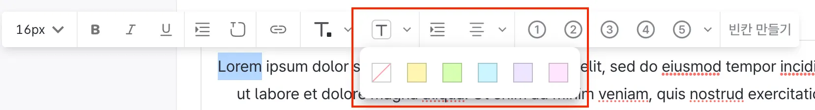 1. 툴박스에서 형광펜 색상을 선택하세요.