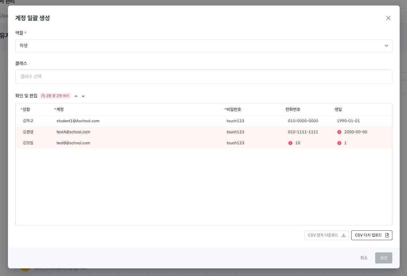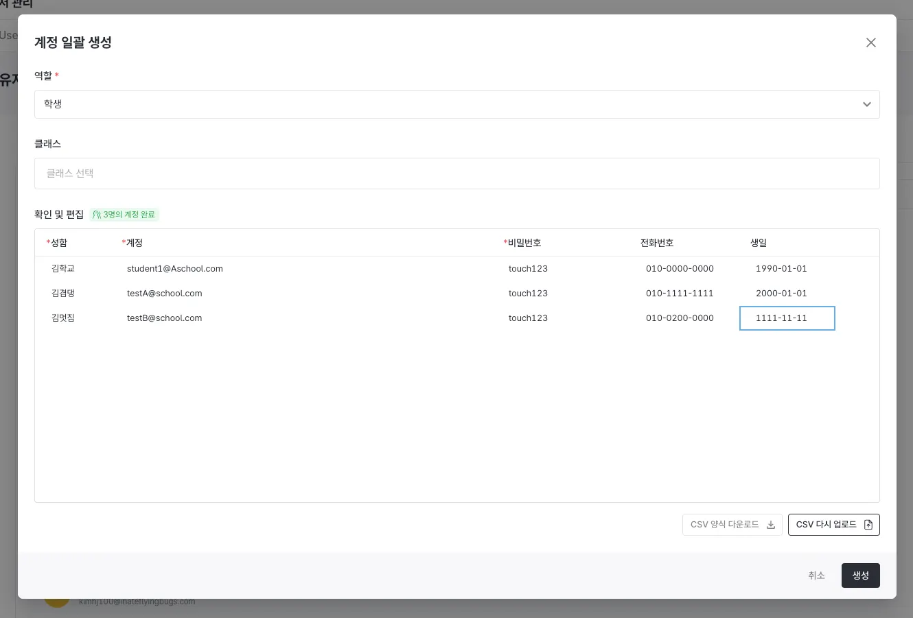 100명, 200명 등 여러명의 계정을 한꺼번에 생성할 수 있는 기능입니다.