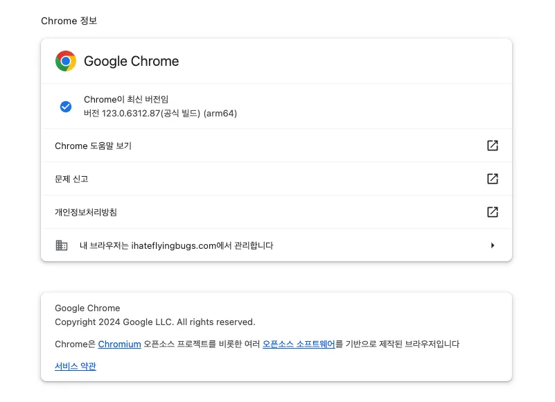 chrome://settings/help 페이지 입장후 Chrome을 최신 버전으로 업데이트해주세요.